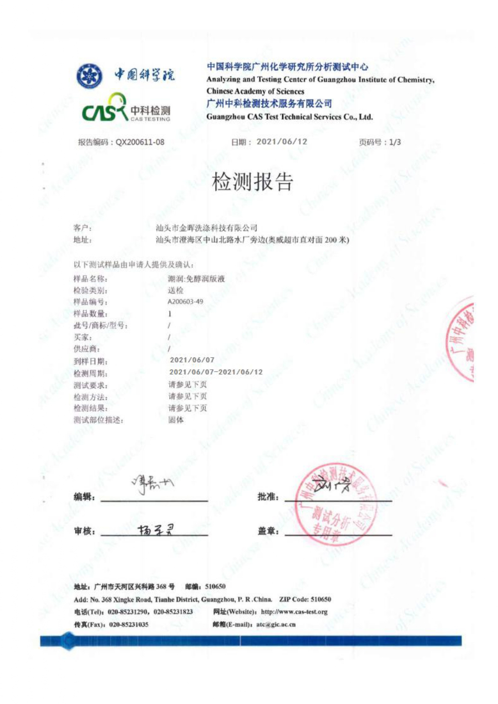 潮潤-免醇潤版液檢測報(bào)告
